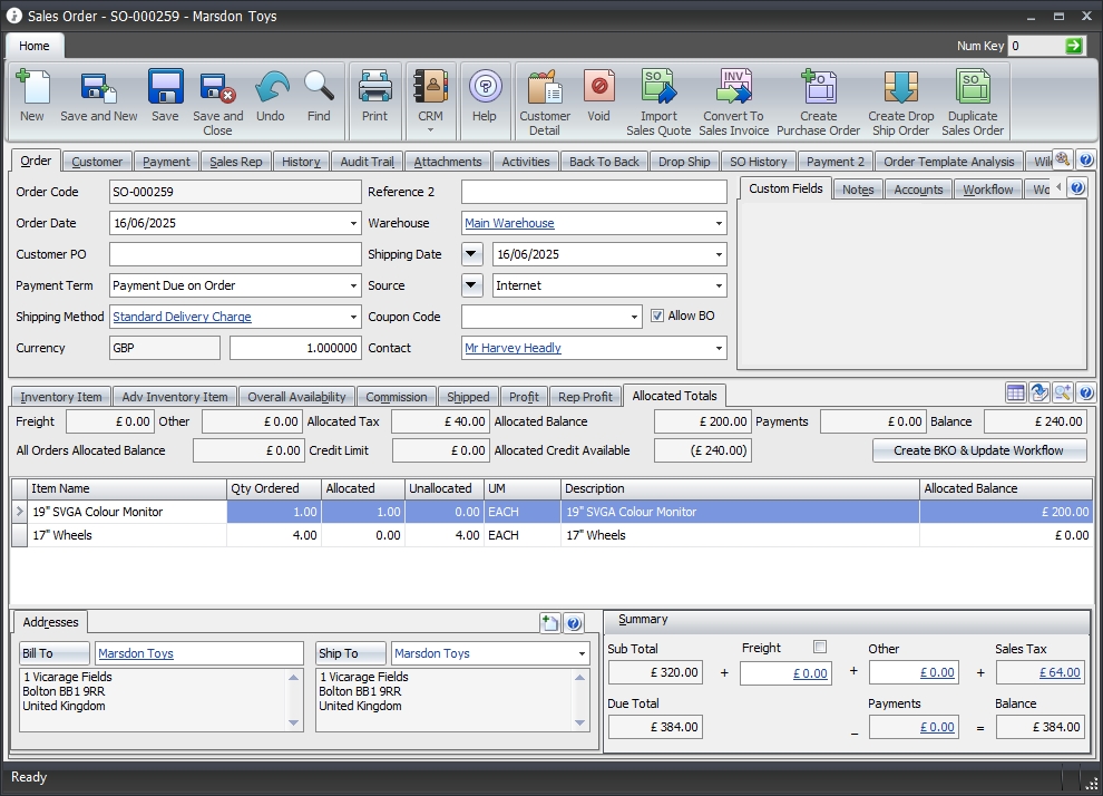 • Option to Allocate Stock on Sales Order