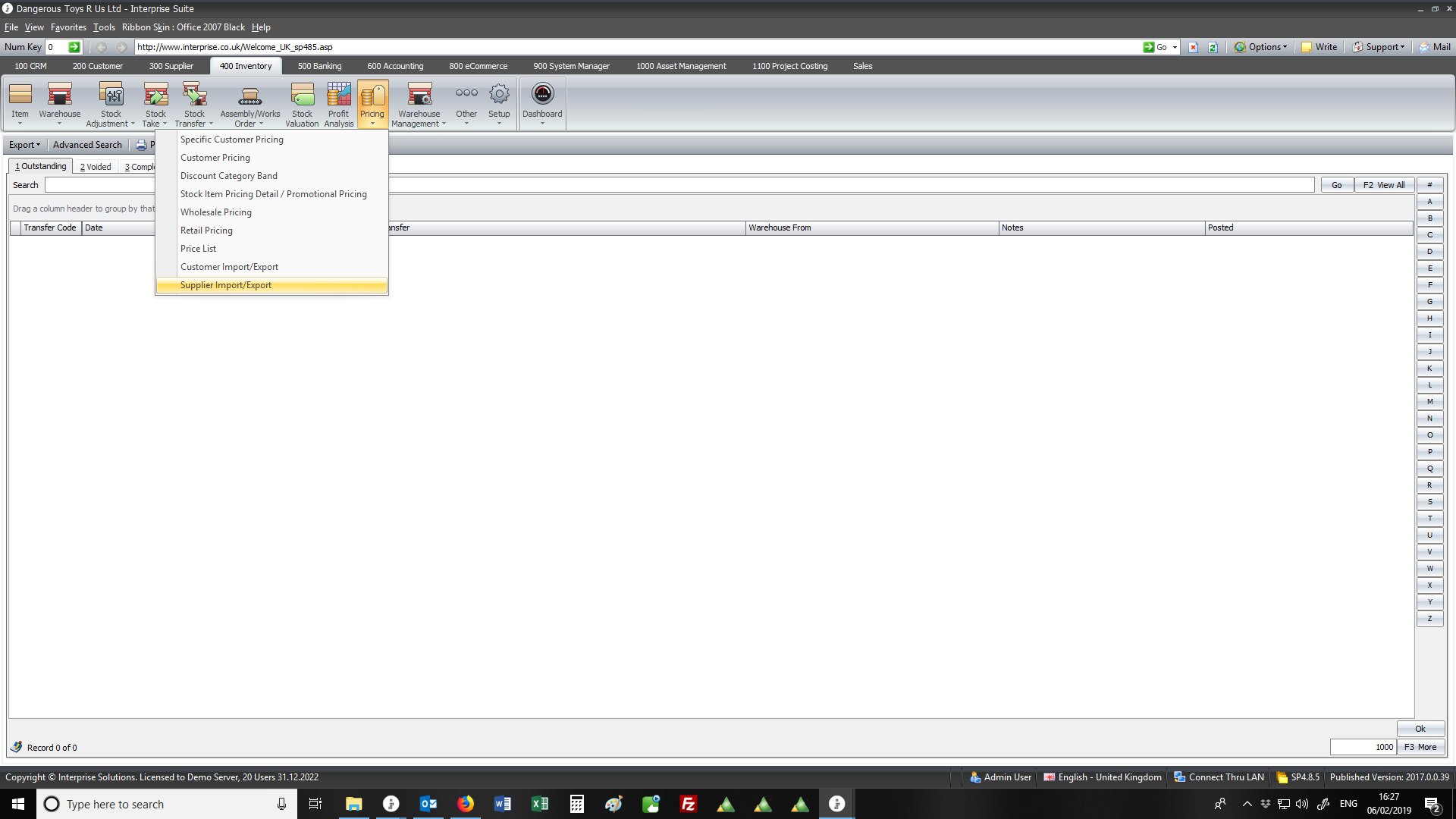 • Stock Import Adjustment Transfer