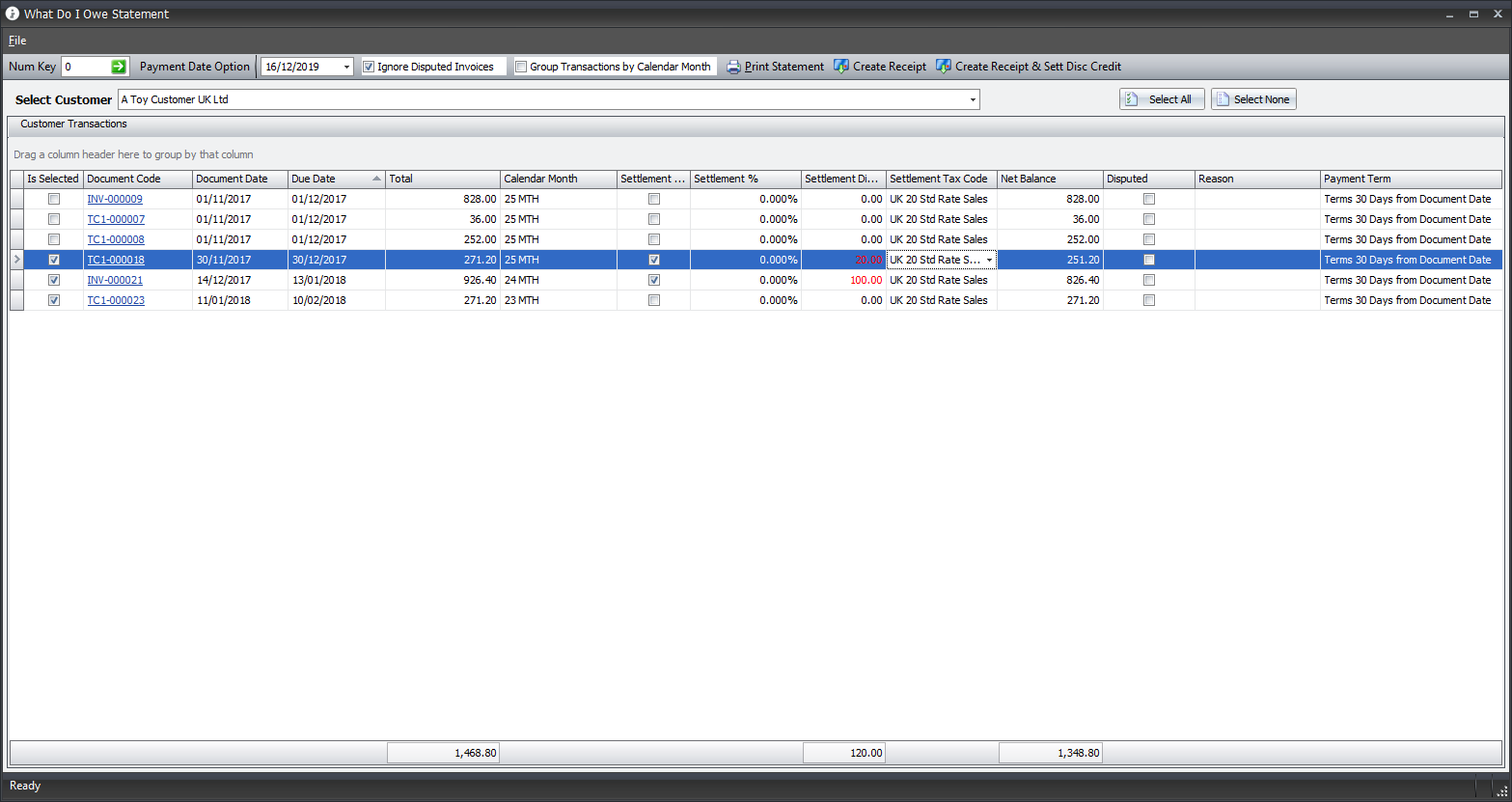 • Part Allocating a Customer Receipt